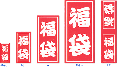 定番デザインの福袋シール。ぺたっと貼ったら福袋の完成です!